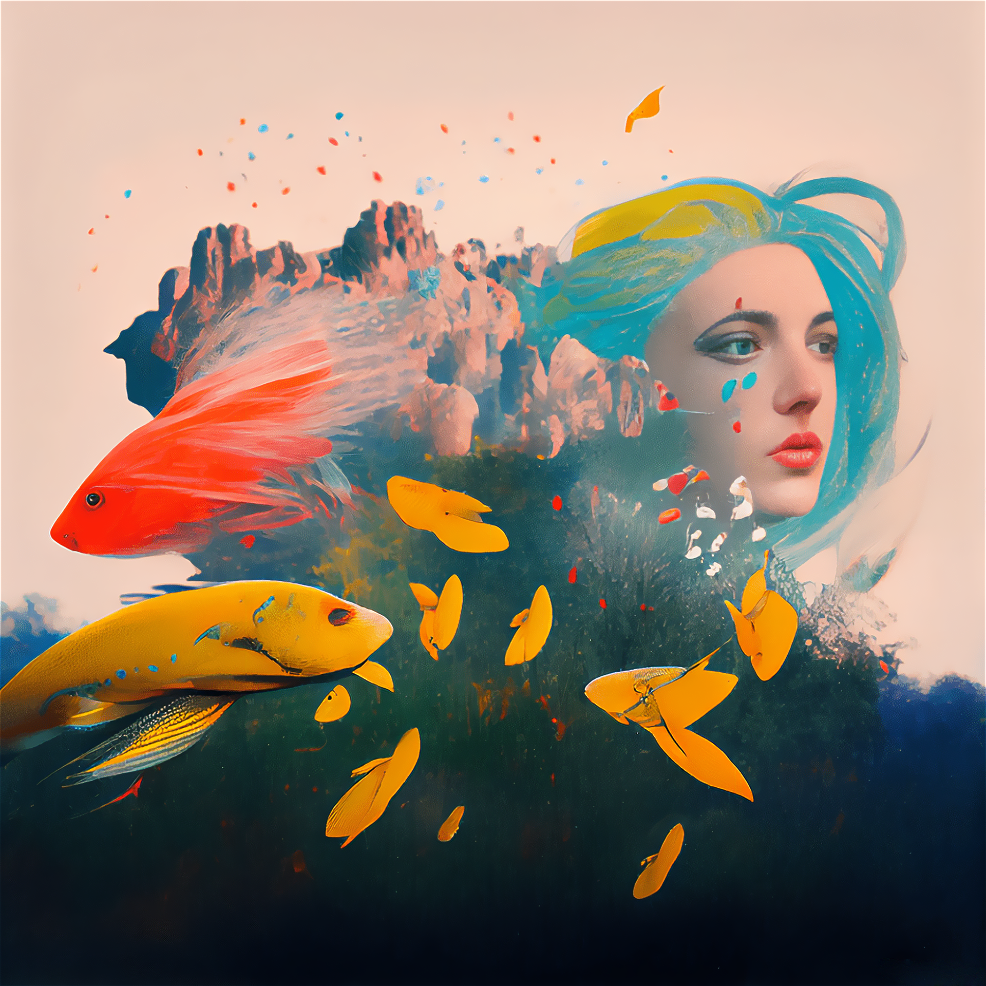 AI art series created with Midjourney, using my paintings and photographs as raw materials 19 Feb 2023